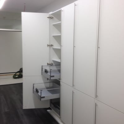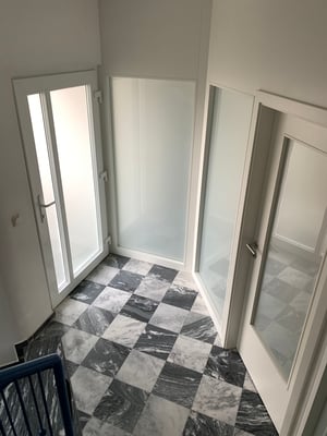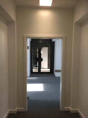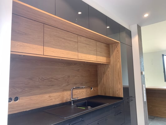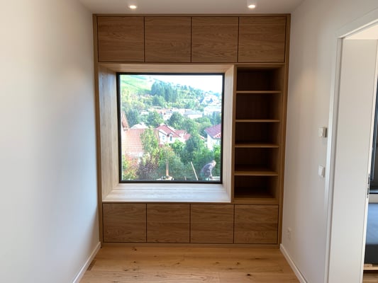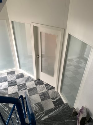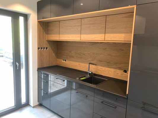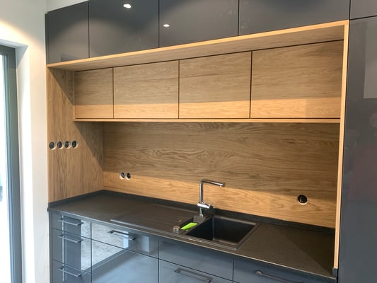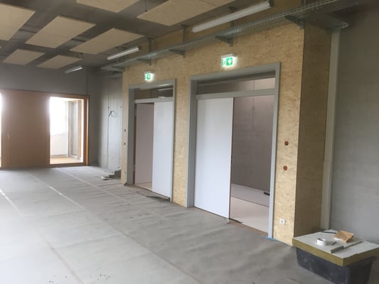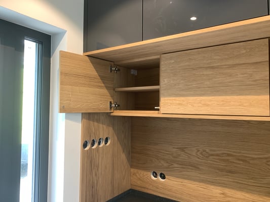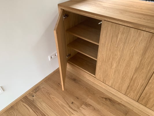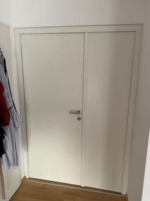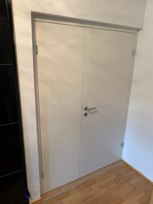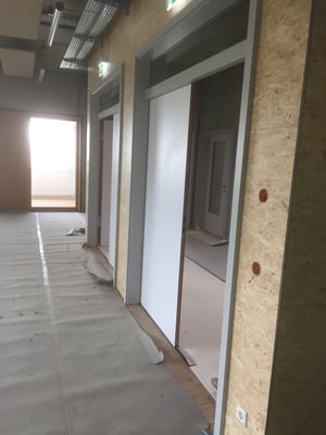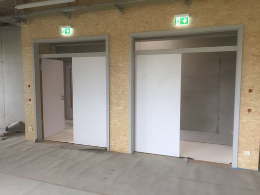 Großprojekt Türhöhe 2450 Stumpfeinschlagend in Eiche furnier mit Bildabwicklung 45 stück mit Edelstahldrücker